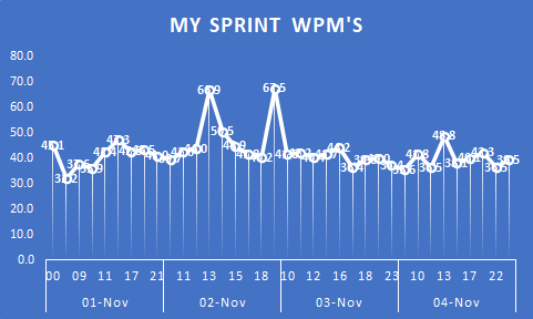 Sprints are timed writing segments where at the end of the time, you compare how many words you all managed to write. Mostly it’s been fifteen minute sprints this year, and I’ve done 52 of them in the first four days of NaNo.