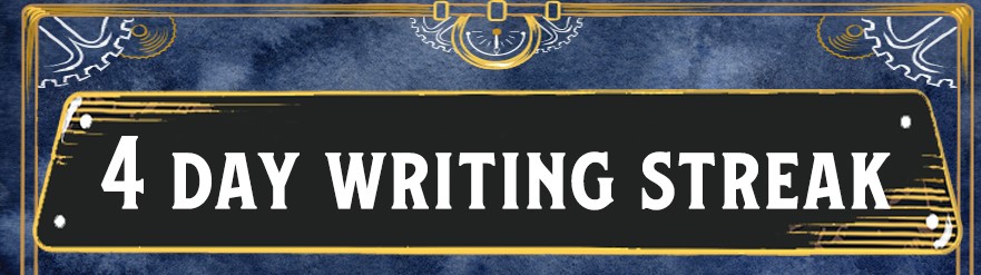 Sprints are timed writing segments where at the end of the time, you compare how many words you all managed to write. Mostly it’s been fifteen minute sprints this year, and I’ve done 52 of them in the first four days of NaNo.