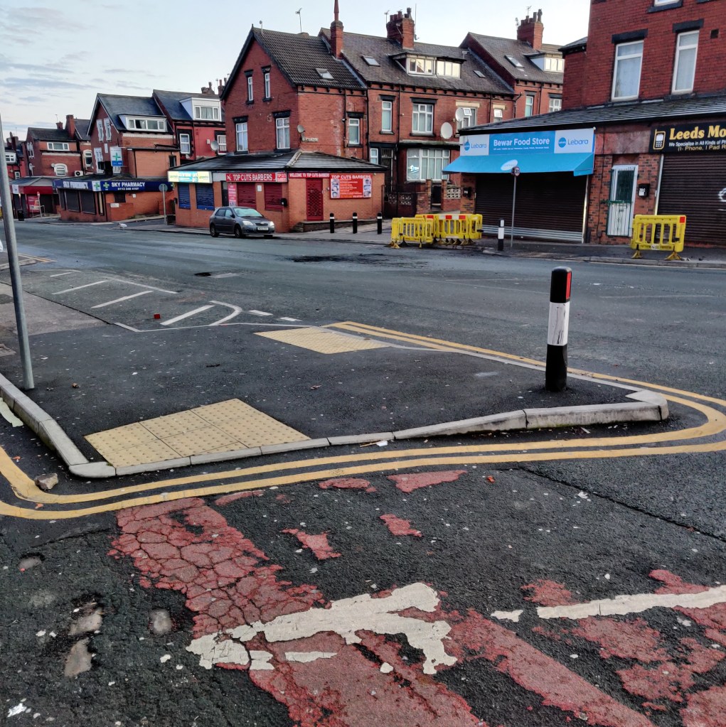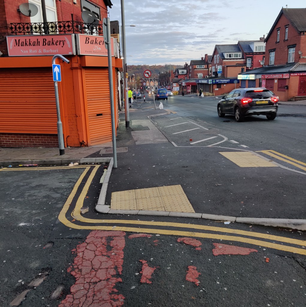 This happened in several place on Harehills Road, including at the top of my street. It was chaos, the police retreated at one point, after they were pelted with rocks, bricks, and fireworks. Left to their own devices there was anarchy, and lots of fireworks. Bins were stolen and burned. Eventually riot police came, and got control of the scene.